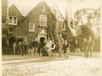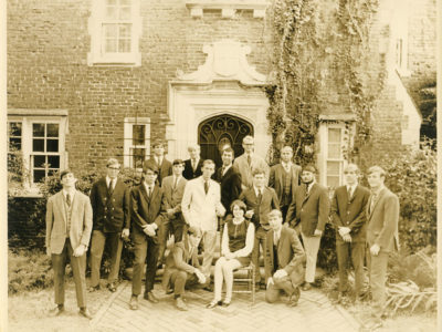 I vividly remember the first meeting of the 13 original Brothers, only a few days later on Wednesday night, October 11. The Chapter Room was dark, illuminated only by candlelight. The first opening ritual began, prefiguring what we have today. The recitation of the Four Virtues. The traditional salute. The grip. The knock at the door. It was all there at the beginning. We had an election of officers. I was elected President, Elton as Vice-President, Lee as Secretary, Dexter as Treasurer. Steve Van Wezel accepted the responsibility of Pledgemaster and, I believe, Bob Hannah became our Master-at-Arms.